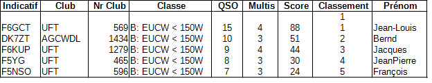 Le concours EUCW 160m, organisé par l’UFT, a eu lieu les 3 et 4 janvier dernier.